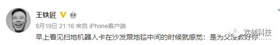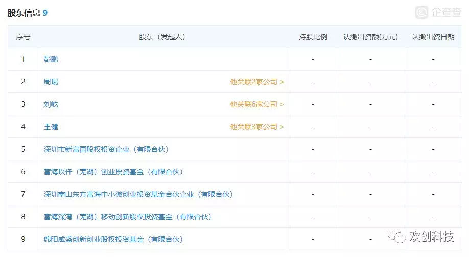 18年9月,王欣微博發了這樣一條,網友評論紛紛提出猜測王欣是否復出后的第一個戰場在掃地機器人行業。這似乎是場預見,18年10月,王欣的妻子彭鵬女士正式成為了歡創科技的第四大股東。